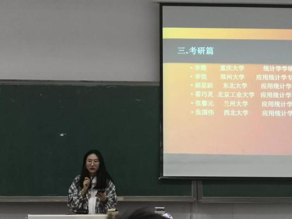 17日,统计专业要邀请了张钦,李霞,李悦,郝星跃,翟巧灵,张馨元,张国伟等七名优秀学子代表。他们分享了当前以及过往自身经历所得来的收获;为同学们分享与考研以及各种备考挂钩的app、视频网站、书籍和公众号等辅助渠道。