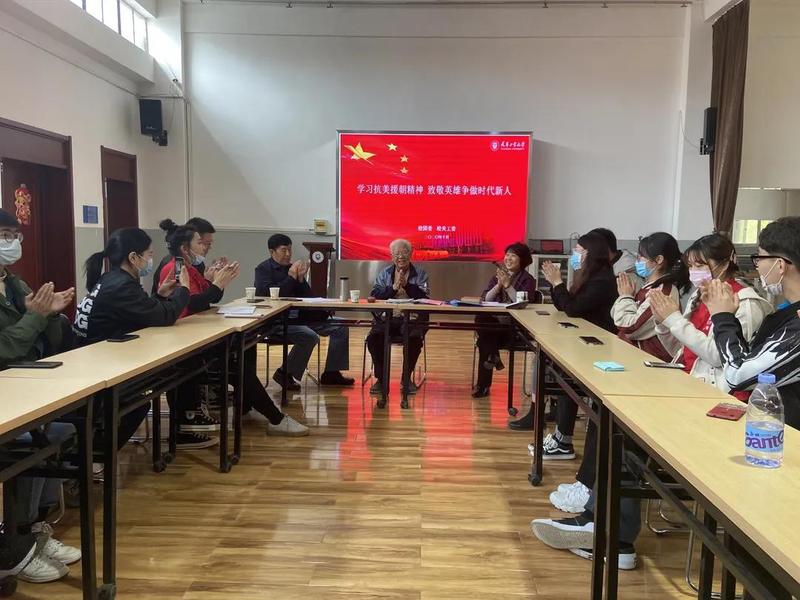 刘馨远老师今年89岁高龄,是一位拥有70年党龄的老党员。他深情回忆了自己的成长经历。小时候他是穷苦人家出身,14岁当纺织学徒,积极参加生产,积极参加政治活动。19岁加入中国共产党,报名支援东北生产,参加抗美援朝战争,战争胜利后退役来到工大。刘老师从个人经历谈起,深情回忆了参加抗美援朝的这段经历。
