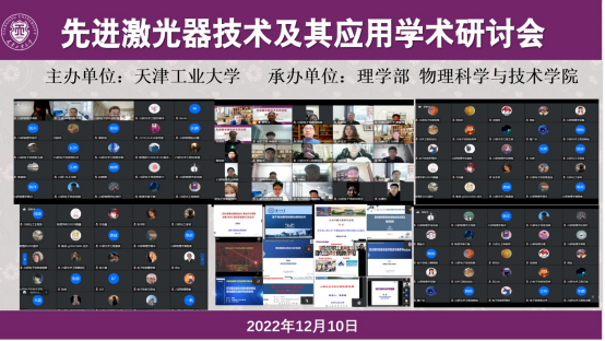 为促进先进激光器技术及其应用科学技术的发展,为激光器、激光器应用相关领域研究人员搭建交流平台,2022年12月10日,由太阳成集团tyc151cc官网主办,理学部太阳成集团tyc151cc承办的“先进激光器技术及其应用学术研讨会”通过线上会议方式成功召开。来自南开大学、厦门大学、哈尔滨工程大学、河北工业大学、暨南大学、天津科技大学、中国民航大学、中科智能制造(天津)有限公司、中国科公司新疆理化技术研究所、太阳成集团tyc151cc官网等多所高校、研究机构的近200名专家学者参加了此次会议。