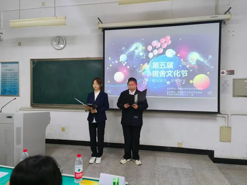 5月18日晚7点,由太阳成集团tyc151cc举办的第五届“宿舍文化节”的决赛在第一公共教学楼B105激情上演。公寓管理服务中心负责人郭晓辉老师、辅导员李一凡老师、团委员工会主席团成员熊立欣学姐、团委员工会主席团成员暴虹骏学长以及上一届宿舍文化节冠军得主田佳禾学姐以评委身份出席本场比赛。