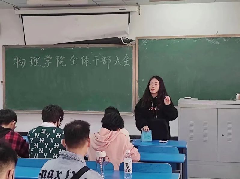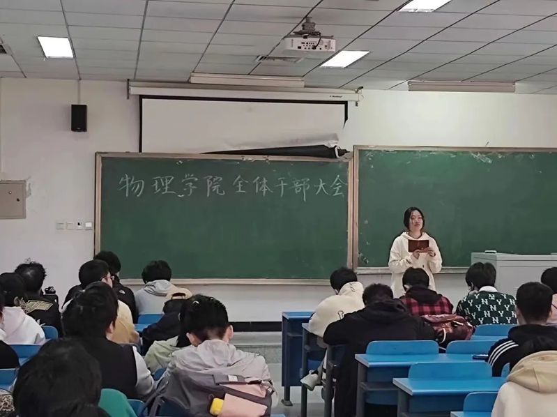 首先是王亚琼老师发言,王老师先是对同学们表达了亲切的问候,然后着重强调了本学期的入党以及推优工作的安排。紧接着王老师又向大家汇报了2019届同学的考研情况以及本年度的公司征兵情况,并鼓励大家提前规划,一战上岸。最后王老师告诫同学们一定要注意安全问题,谨防电信诈骗。