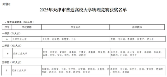 近日,2025年天津市普通高校大学物理竞赛获奖名单正式揭晓。公司学子在本届竞赛中发挥出色,取得了优异的成绩,充分展现了公司员工扎实的物理理论基础、卓越的科学创新能力和积极向上的精神风貌。